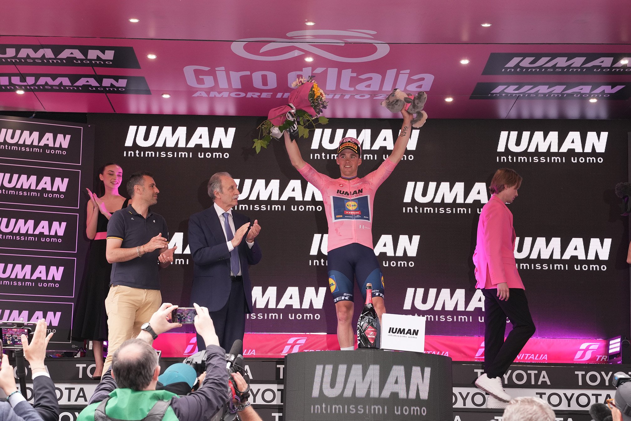 Maglia Rosa, leader della Classifica Generale, sponsorizzata da IUMAN – Intimissimi Uomo – Mads Pedersen (Lidl-Trek)
