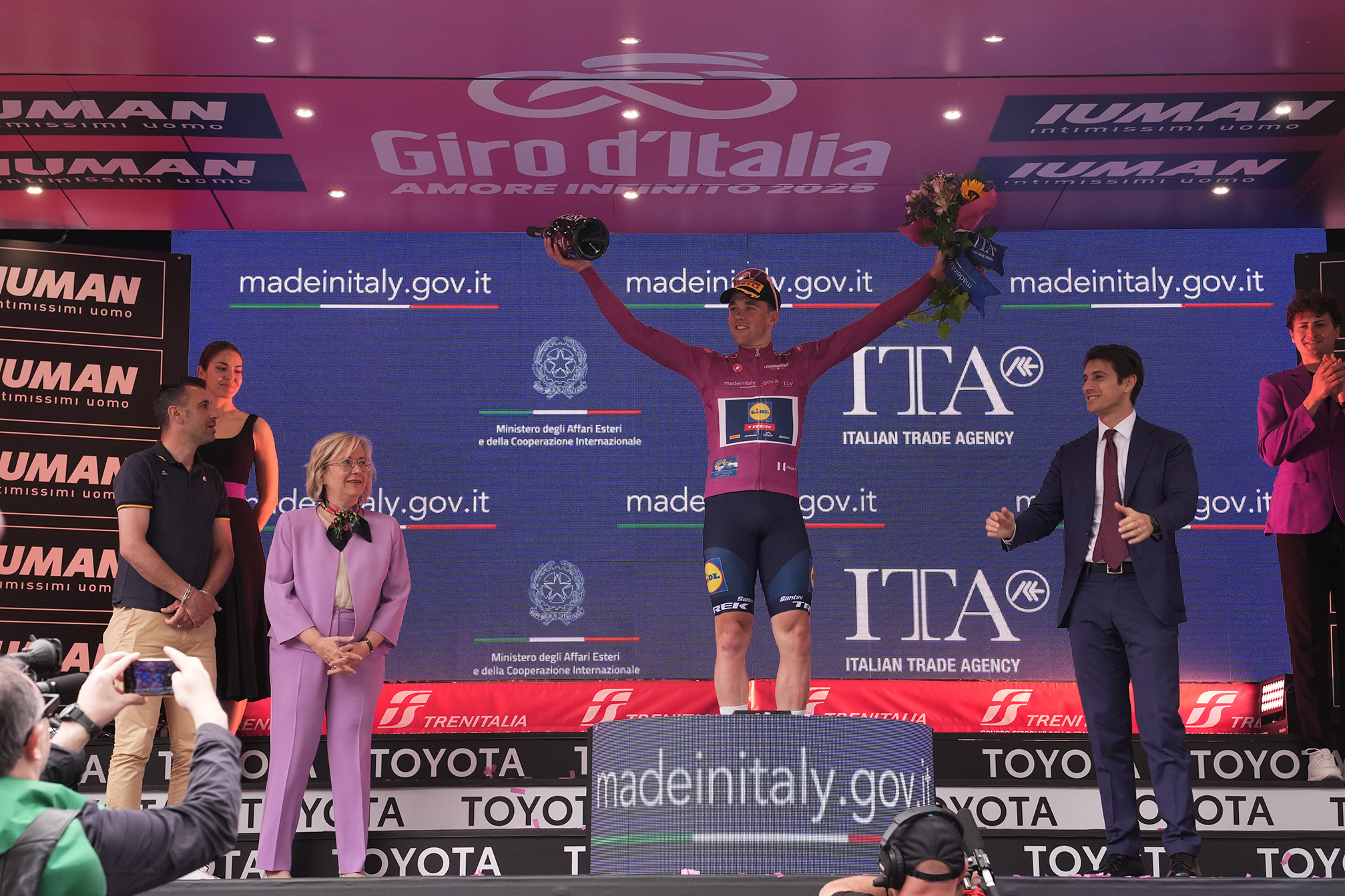 Maglia Ciclamino, leader della Classifica a Punti, leader della Classifica a Punti, in collaborazione con Ministero degli Affari Esteri e della Cooperazione Internazionale e ITA Italian Trade Agency – Mads Pedersen (Lidl-Trek) – indossata da Olav Kooij (Team Visma | Lease a Bike)