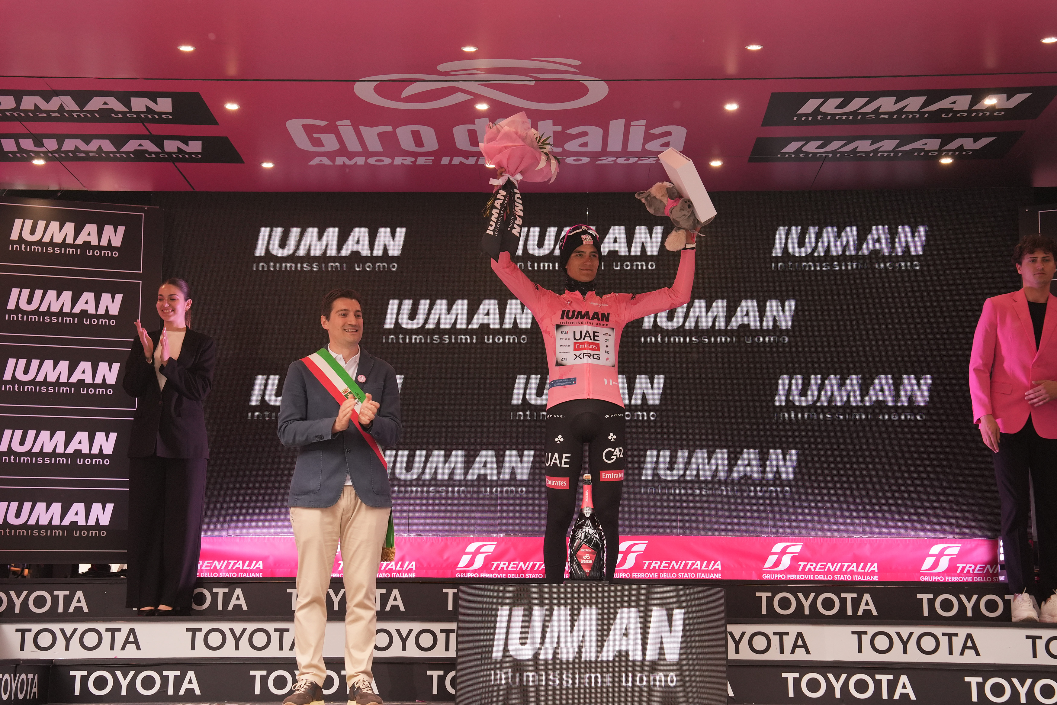 Maglia Rosa, leader della Classifica Generale, sponsorizzata da IUMAN – Intimissimi Uomo – Isaac Del Toro (UAE Team Emirates XRG)
