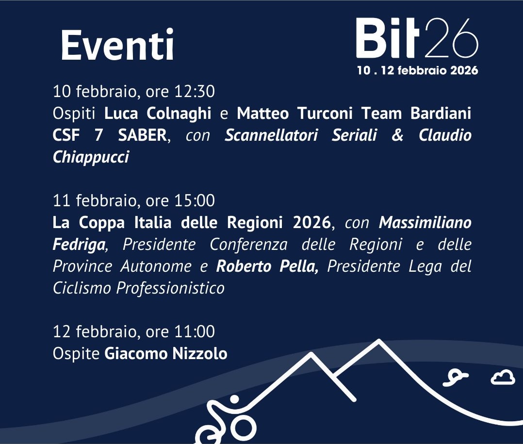 Ore 15:00 – Presentazione della Coppa Italia delle Regioni 2026, con Massimiliano Fedriga (Presidente della Conferenza delle Regioni e delle Province Autonome) e Roberto Pella (Presidente della Lega Ciclismo Professionisti).