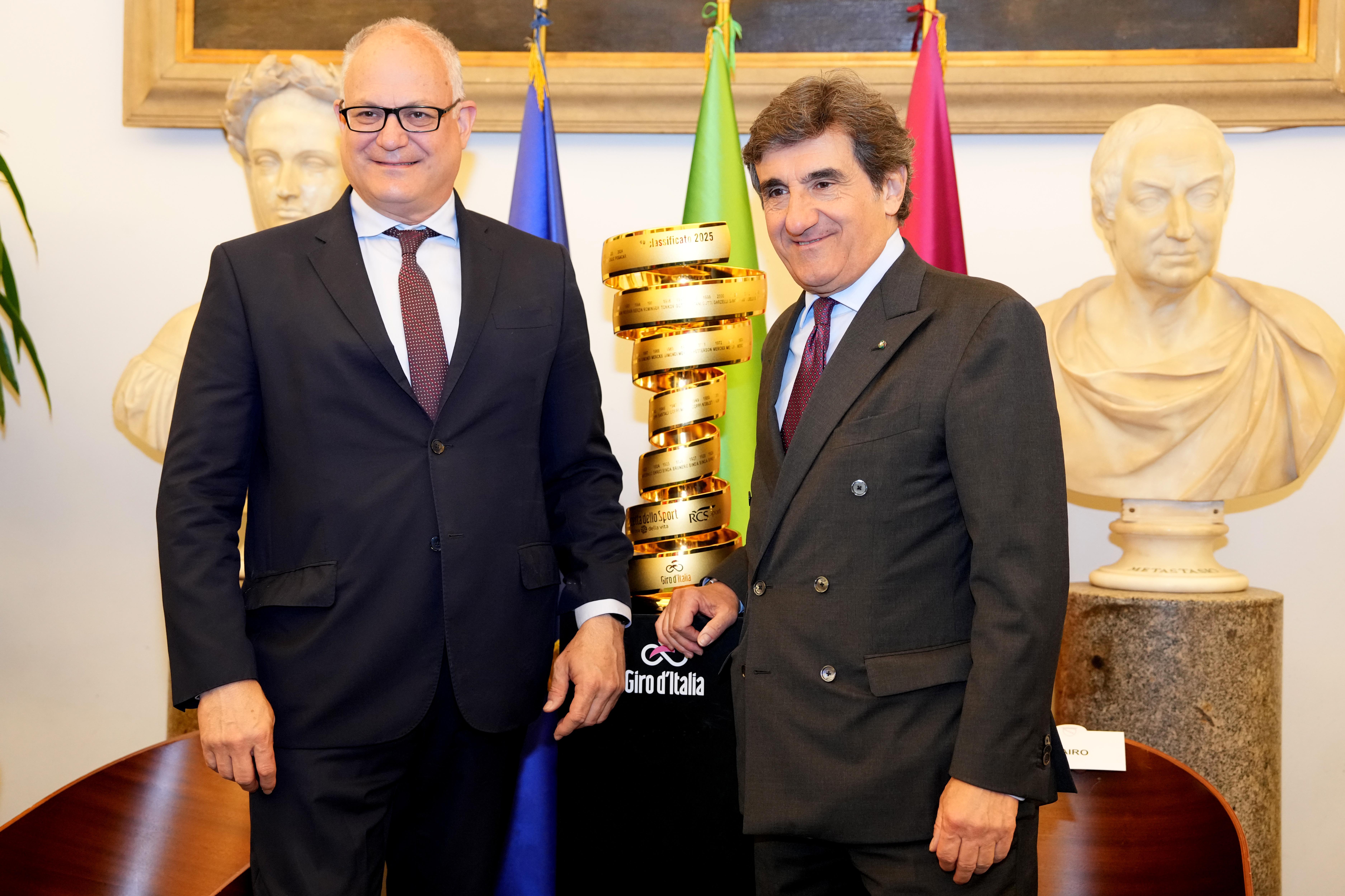 Roma, 29 aprile 2025 – L’ultima tappa del Giro d’Italia, in programma domenica 1° giugno, sarà dedicata a Papa Francesco. La corsa transiterà dalla Città del Vaticano e terminerà davanti al Circo Massimo. Un passaggio fortemente voluto da Papa Francesco, nell’anno del Giubileo, che il Vaticano sta supportando anche in questi giorni. Alla presentazione, tenutasi in Campidoglio, sono intervenuti il Sindaco di Roma, Roberto Gualtieri; il Presidente di RCS MediaGroup, Urbano Cairo; il Vescovo Paul Tighe, Segretario del Dicastero per la cultura e l’educazione; l’Assessore ai Grandi Eventi, Sport, Turismo e Moda di Roma, Alessandro Onorato; l’Amministratore Delegato di RCS Sports & Events, Paolo Bellino; il Direttore del Giro d’Italia, Mauro Vegni; il Direttore de La Gazzetta dello Sport, Stefano Barigelli; e Vincenzo Nibali, vincitore di due Giri d’Italia (2013 e 2016) oltre a tante altre istituzioni, rappresentanti dei Media e dei partner della Corsa Rosa.