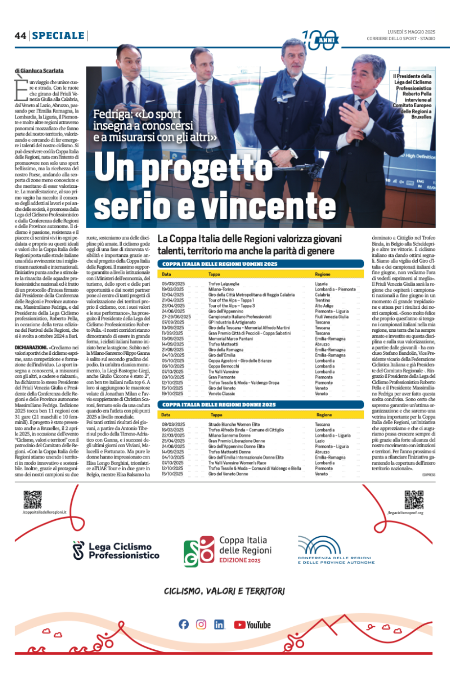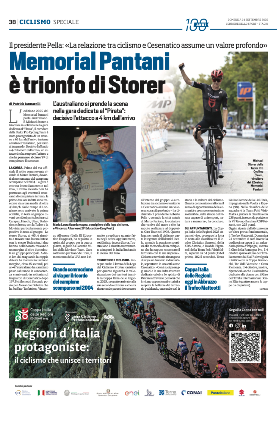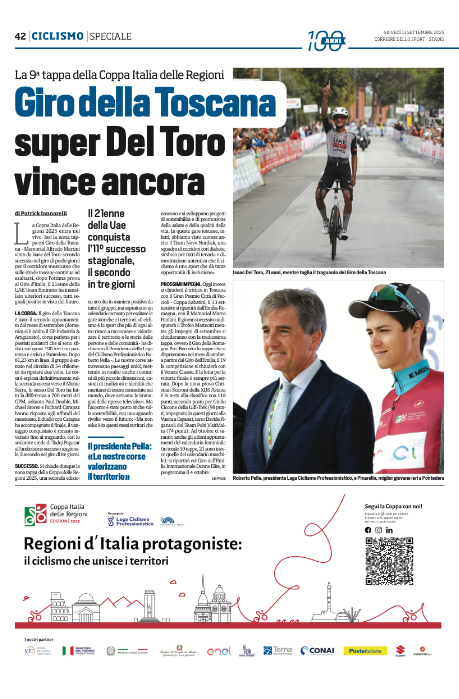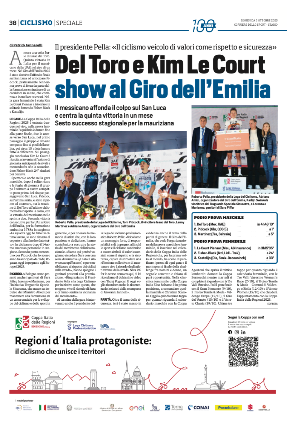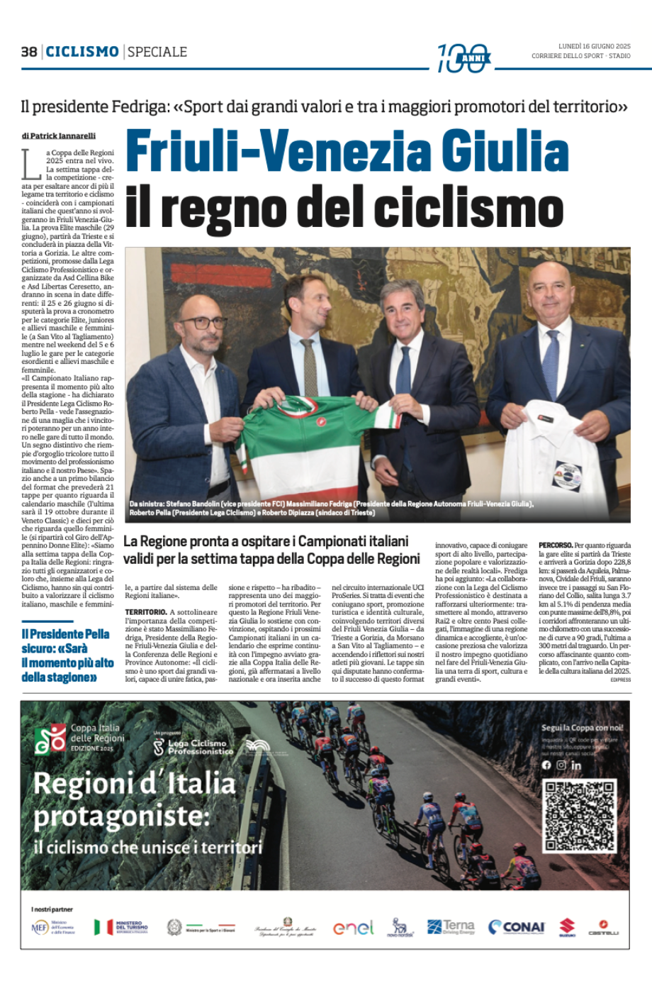 Una maglia in comuneIstituzione del Traguardo Speciale Sicurezza alla Coppa Italia delle Regioni 3 settembre - Corriere dello Sport