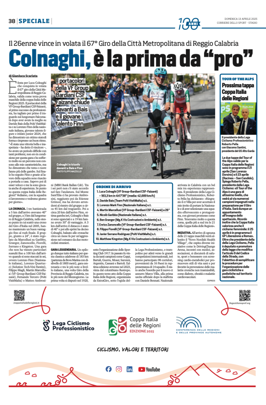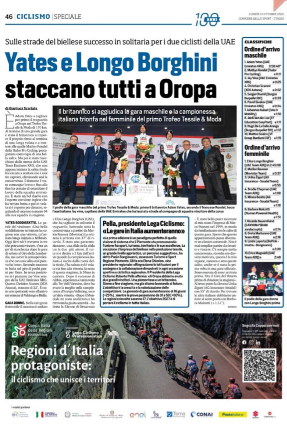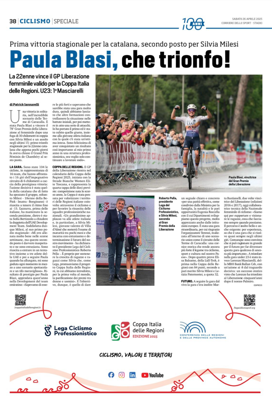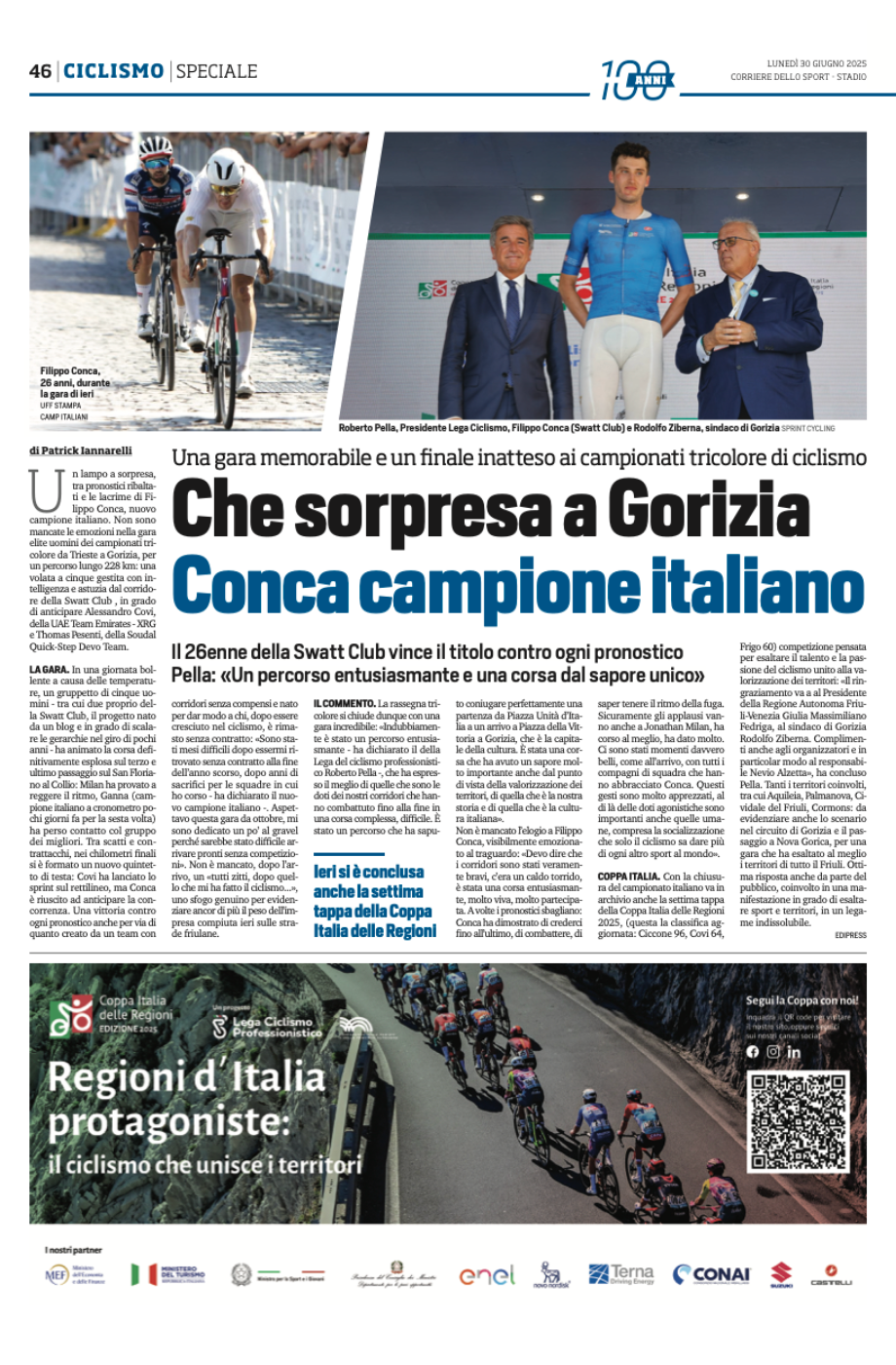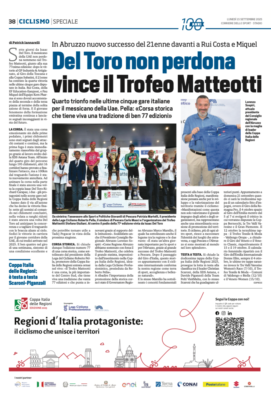 Una maglia in comuneIstituzione del Traguardo Speciale Sicurezza alla Coppa Italia delle Regioni 3 settembre - Corriere dello Sport