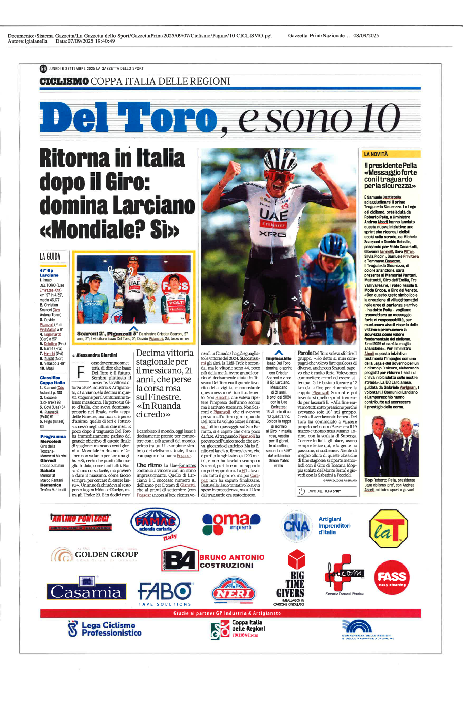Trofeo Matteotti 2025_La Gazzetta dello Sport